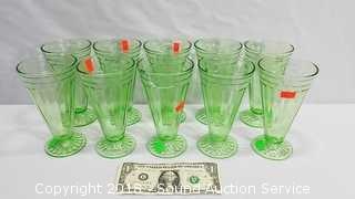 Lot #0040: Set of 10 Vtg. Vaseline Glass Sundae Glasses