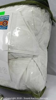 Soft cotton outer shell, 100% silk filled liner, quilted, breathable, certified asthma and allergy friendly. Comes in original package. Condition of items sold - The auctioneer shall not be responsible for the correct description, authenticity, genuineness of, estimated selling price of, or defect in any lot, and makes no warranty in connection therewith. No allowance will be made or sale set aside on account of any incorrectness, error in cataloging, or any imperfection not noted. No deduction will be allowed on damaged articles as all goods being exposed for public exhibition are sold “as is” and without recourse. All measurements and sizes - are approximate. Claims - No claims will be allowed after goods are removed from premises. All lots - to be sold AS IS, WHERE IS. ALL SALES FINAL, WE DO NOT ACCEPT RETURNS.