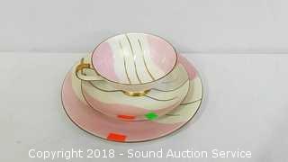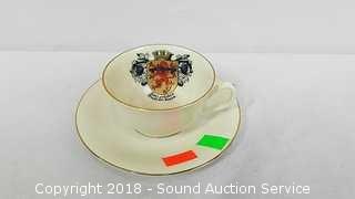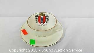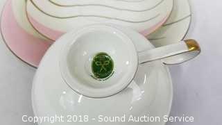 Includes: 3pc. Bavaria made in Germany teacup saucer and snack plate set, and 2 coat of arms Bavarian Germany fine china teacups. The auctioneer shall not be responsible for the correct description, authenticity, genuineness of, estimated selling price of, or defect in any lot, and makes no warranty in connection therewith. No allowance will be made or sale set aside on account of any incorrectness, error in cataloging, or any imperfection not noted. No deduction will be allowed on damaged articles as all goods being exposed for public exhibition are sold “as is” and without recourse. All measurements and sizes - are approximate. CLAIMS - No claims will be allowed after goods are removed from premises. All lots - to be sold AS IS, WHERE IS. ALL SALES FINAL, WE DO NOT ACCEPT RETURNS.