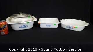 Lot #0027: 3pc. Corning Ware Cornflower Baking Dish Set