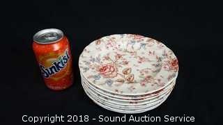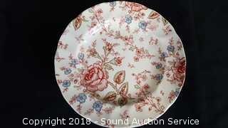 Lot #0055: (8) Vtg. Johnson Brothers Red Floral Lunch Plates