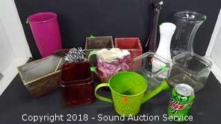 Includes: Portalign Drill Guide Model 101A, (12) Various Vases, Punch Bowls w/11 Glasses, Mckeeson Adjustable Crutches, Lakewood Metal Space Heater, Fly Fishers, Field Guide & Rifle Accuracy Literate, Pair of Metal Frame Woven Basket Decor, Pet Care Supplies & Small Carrier, Travel Water Bottles & Contigo Shake Stir Bottles, License Plates & Vtg Travel Maps, Igloo Kool Rider 6-QT Thermoelectric Roadster, Collection of Angel, Teddy Bear & Christmas Decor, Men's Drew Dark Brown Trek Shoes - Size 12.5 4W, Home Shoulder Pullie System & Ankle Support, 5-Packs V.A.C. Granufoam Dressing - Large. The auctioneer shall not be responsible for the correct description, authenticity, genuineness of, estimated selling price of, or defect in any lot, and makes no warranty in connection therewith. No allowance will be made or sale set aside on account of any incorrectness, error in cataloging, or any imperfection not noted. No deduction will be allowed on damaged articles as all goods being exposed for public exhibition are sold “as is” and without recourse. All measurements and sizes - are approximate. CLAIMS - No claims will be allowed after goods are removed from premises. All lots - to be sold AS IS, WHERE IS. ALL SALES FINAL, WE DO NOT ACCEPT RETURNS.