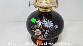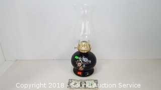 Comes with lamp oil. Approx. 15" H. The auctioneer shall not be responsible for the correct description, authenticity, genuineness of, estimated selling price of, or defect in any lot, and makes no warranty in connection therewith. No allowance will be made or sale set aside on account of any incorrectness, error in cataloging, or any imperfection not noted. No deduction will be allowed on damaged articles as all goods being exposed for public exhibition are sold “as is” and without recourse. All measurements and sizes - are approximate. CLAIMS - No claims will be allowed after goods are removed from premises. All lots - to be sold AS IS, WHERE IS. ALL SALES FINAL, WE DO NOT ACCEPT RETURNS.