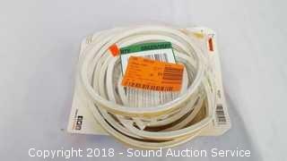 9/16" W, 5/16" thick, 10ft L. White. The auctioneer shall not be responsible for the correct description, authenticity, genuineness of, estimated selling price of, or defect in any lot, and makes no warranty in connection therewith. No allowance will be made or sale set aside on account of any incorrectness, error in cataloging, or any imperfection not noted. No deduction will be allowed on damaged articles as all goods being exposed for public exhibition are sold “as is” and without recourse. All measurements and sizes - are approximate. CLAIMS - No claims will be allowed after goods are removed from premises. All lots - to be sold AS IS, WHERE IS. ALL SALES FINAL, WE DO NOT ACCEPT RETURNS.