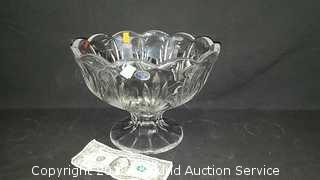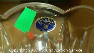 24% lead crystal from Bohemia Czech Replublic. Approx. 7" H, 9-1/2" diameter. Still has the original sticker. The auctioneer shall not be responsible for the correct description, authenticity, genuineness of, estimated selling price of, or defect in any lot, and makes no warranty in connection therewith. No allowance will be made or sale set aside on account of any incorrectness, error in cataloging, or any imperfection not noted. No deduction will be allowed on damaged articles as all goods being exposed for public exhibition are sold “as is” and without recourse. All measurements and sizes - are approximate. CLAIMS - No claims will be allowed after goods are removed from premises. All lots - to be sold AS IS, WHERE IS. ALL SALES FINAL, WE DO NOT ACCEPT RETURNS.