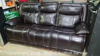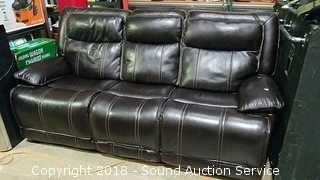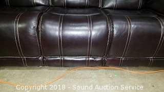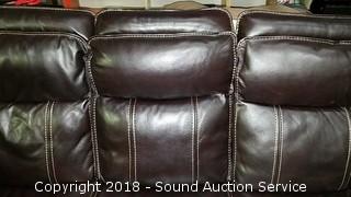 Super comfortable. Has contrasting stitching. In excellent condition. Approx. 7ft L, 43" H, 35" D. The auctioneer shall not be responsible for the correct description, authenticity, genuineness of, estimated selling price of, or defect in any lot, and makes no warranty in connection therewith. No allowance will be made or sale set aside on account of any incorrectness, error in cataloging, or any imperfection not noted. No deduction will be allowed on damaged articles as all goods being exposed for public exhibition are sold “as is” and without recourse. All measurements and sizes - are approximate. CLAIMS - No claims will be allowed after goods are removed from premises. All lots - to be sold AS IS, WHERE IS. ALL SALES FINAL, WE DO NOT ACCEPT RETURNS.
