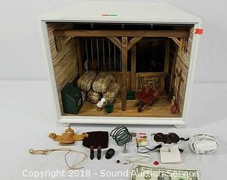 Lot #0274: Miniature Wooden Horse Stable w/Accessories