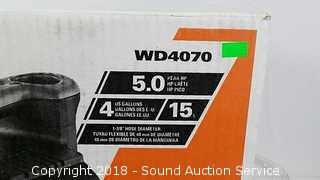 5HP. Model WD4070. Comes in original box. The auctioneer shall not be responsible for the correct description, authenticity, genuineness of, estimated selling price of, or defect in any lot, and makes no warranty in connection therewith. No allowance will be made or sale set aside on account of any incorrectness, error in cataloging, or any imperfection not noted. No deduction will be allowed on damaged articles as all goods being exposed for public exhibition are sold “as is” and without recourse. All measurements and sizes - are approximate. CLAIMS - No claims will be allowed after goods are removed from premises. All lots - to be sold AS IS, WHERE IS. ALL SALES FINAL, WE DO NOT ACCEPT RETURNS.