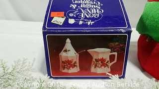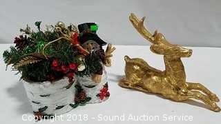 Includes: Santa Hats, Reindeer, Candle Votives, Tin Sleigh Candle Votive, Organizer, Tin Trays, Bone China Cream & Sugar, Snowman Decor. The auctioneer shall not be responsible for the correct description, authenticity, genuineness of, estimated selling price of, or defect in any lot, and makes no warranty in connection therewith. No allowance will be made or sale set aside on account of any incorrectness, error in cataloging, or any imperfection not noted. No deduction will be allowed on damaged articles as all goods being exposed for public exhibition are sold “as is” and without recourse. All measurements and sizes - are approximate. CLAIMS - No claims will be allowed after goods are removed from premises. All lots - to be sold AS IS, WHERE IS. ALL SALES FINAL, WE DO NOT ACCEPT RETURNS.