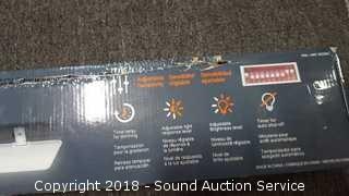 Comes in original box. 48 watt. Time delay, adjustable light response level, adjustable brightness level, timer. The auctioneer shall not be responsible for the correct description, authenticity, genuineness of, estimated selling price of, or defect in any lot, and makes no warranty in connection therewith. No allowance will be made or sale set aside on account of any incorrectness, error in cataloging, or any imperfection not noted. No deduction will be allowed on damaged articles as all goods being exposed for public exhibition are sold “as is” and without recourse. All measurements and sizes - are approximate. CLAIMS - No claims will be allowed after goods are removed from premises. All lots - to be sold AS IS, WHERE IS. ALL SALES FINAL, WE DO NOT ACCEPT RETURNS.