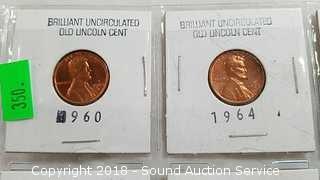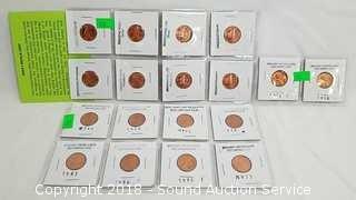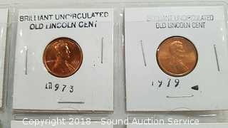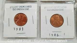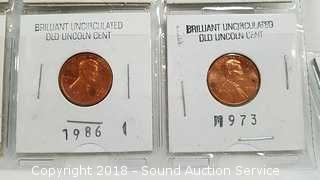 Includes: (8) 2009 Lincoln Cents & (10) 1956-1986 BU Linclon Cents. ATTN: We are not coin experts or graders please use your own judgement when bidding. The auctioneer shall not be responsible for the correct description, authenticity, genuineness of, estimated selling price of, or defect in any lot, and makes no warranty in connection therewith. No allowance will be made or sale set aside on account of any incorrectness, error in cataloging, or any imperfection not noted. No deduction will be allowed on damaged articles as all goods being exposed for public exhibition are sold “as is” and without recourse. All measurements and sizes - are approximate. CLAIMS - No claims will be allowed after goods are removed from premises. All lots - to be sold AS IS, WHERE IS. ALL SALES FINAL, WE DO NOT ACCEPT RETURNS.