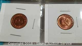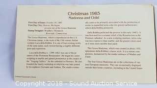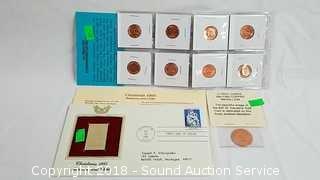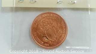 Includes: 1/4 Troy Ounce .999 Fine Copper $20 St. Gaudens Gold Coin Replica, (8) P&D US Treasury Commemorative Medallions & Christmas 1985 Madonna & Child FDI Gold Stamp (with COA). ATTN: We are not coin experts or graders please use your own judgement when bidding. The auctioneer shall not be responsible for the correct description, authenticity, genuineness of, estimated selling price of, or defect in any lot, and makes no warranty in connection therewith. No allowance will be made or sale set aside on account of any incorrectness, error in cataloging, or any imperfection not noted. No deduction will be allowed on damaged articles as all goods being exposed for public exhibition are sold “as is” and without recourse. All measurements and sizes - are approximate. CLAIMS - No claims will be allowed after goods are removed from premises. All lots - to be sold AS IS, WHERE IS. ALL SALES FINAL, WE DO NOT ACCEPT RETURNS.