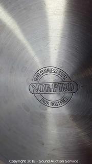 Egg pocher is a Norpro. Saucepan is Endurance and boiling pot is Cuisinarts. The auctioneer shall not be responsible for the correct description, authenticity, genuineness of, estimated selling price of, or defect in any lot, and makes no warranty in connection therewith. No allowance will be made or sale set aside on account of any incorrectness, error in cataloging, or any imperfection not noted. No deduction will be allowed on damaged articles as all goods being exposed for public exhibition are sold “as is” and without recourse. All measurements and sizes - are approximate. CLAIMS - No claims will be allowed after goods are removed from premises. All lots - to be sold AS IS, WHERE IS. ALL SALES FINAL, WE DO NOT ACCEPT RETURNS.