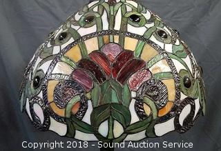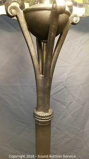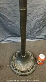 Ornate base. Approx. 62" H x 22" Diameter. Takes 3 bulbs. Another Absolutely gorgeous lamp. The auctioneer shall not be responsible for the correct description, authenticity, genuineness of, estimated selling price of, or defect in any lot, and makes no warranty in connection therewith. No allowance will be made or sale set aside on account of any incorrectness, error in cataloging, or any imperfection not noted. No deduction will be allowed on damaged articles as all goods being exposed for public exhibition are sold “as is” and without recourse. All measurements and sizes - are approximate. CLAIMS - No claims will be allowed after goods are removed from premises. All lots - to be sold AS IS, WHERE IS. ALL SALES FINAL, WE DO NOT ACCEPT RETURNS.