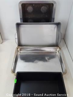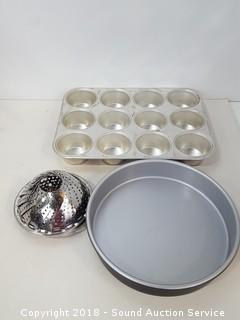 Includes: Cupcake pans, baking pans, loaf pans and racks. All like new, in excellent condition. The auctioneer shall not be responsible for the correct description, authenticity, genuineness of, estimated selling price of, or defect in any lot, and makes no warranty in connection therewith. No allowance will be made or sale set aside on account of any incorrectness, error in cataloging, or any imperfection not noted. No deduction will be allowed on damaged articles as all goods being exposed for public exhibition are sold “as is” and without recourse. All measurements and sizes - are approximate. CLAIMS - No claims will be allowed after goods are removed from premises. All lots - to be sold AS IS, WHERE IS. ALL SALES FINAL, WE DO NOT ACCEPT RETURNS.