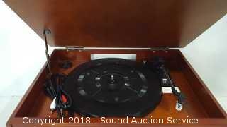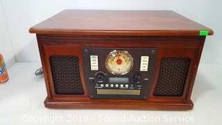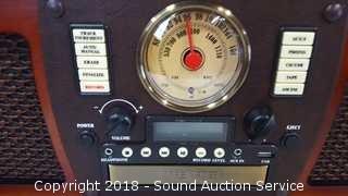 Comes with bluetooth, recordable CD player, USB record player, AM/FM, cassette. Comes with manual. Model ITVS-760B. In excellent condition. Approx. 10" x 18" x 13". The auctioneer shall not be responsible for the correct description, authenticity, genuineness of, estimated selling price of, or defect in any lot, and makes no warranty in connection therewith. No allowance will be made or sale set aside on account of any incorrectness, error in cataloging, or any imperfection not noted. No deduction will be allowed on damaged articles as all goods being exposed for public exhibition are sold “as is” and without recourse. All measurements and sizes - are approximate. CLAIMS - No claims will be allowed after goods are removed from premises. All lots - to be sold AS IS, WHERE IS. ALL SALES FINAL, WE DO NOT ACCEPT RETURNS.