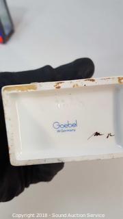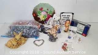Includes: Vase filler beads, Hummel figurines (one has broken wing), leaded glass trinket box, laser etched paperweight, vintage plate and more. The auctioneer shall not be responsible for the correct description, authenticity, genuineness of, estimated selling price of, or defect in any lot, and makes no warranty in connection therewith. No allowance will be made or sale set aside on account of any incorrectness, error in cataloging, or any imperfection not noted. No deduction will be allowed on damaged articles as all goods being exposed for public exhibition are sold “as is” and without recourse. All measurements and sizes - are approximate. CLAIMS - No claims will be allowed after goods are removed from premises. All lots - to be sold AS IS, WHERE IS. ALL SALES FINAL, WE DO NOT ACCEPT RETURNS.