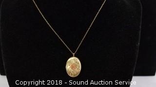 Lot #0308: 14K Gold 16" Chain w/14K GF Locket