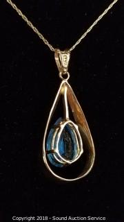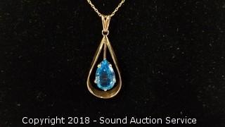 Lot #0314: 14K Gold & Aquamarine Necklace & Earrings Set