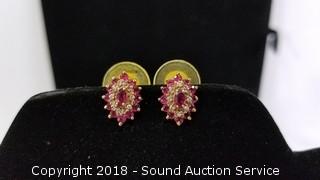Lot #0313: Beautiful 14K Gold Ruby & Moissanite Earrings