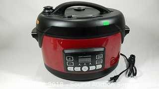 Slow cooker, pressure cooker, steamer. Looks to be brand new. The auctioneer shall not be responsible for the correct description, authenticity, genuineness of, estimated selling price of, or defect in any lot, and makes no warranty in connection therewith. No allowance will be made or sale set aside on account of any incorrectness, error in cataloging, or any imperfection not noted. No deduction will be allowed on damaged articles as all goods being exposed for public exhibition are sold “as is” and without recourse. All measurements and sizes - are approximate. CLAIMS - No claims will be allowed after goods are removed from premises. All lots - to be sold AS IS, WHERE IS. ALL SALES FINAL, WE DO NOT ACCEPT RETURNS.