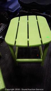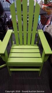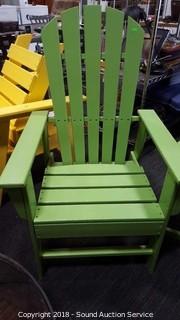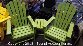 Lot #0105: Green Poly-wood Adirondack Chairs & Table Set