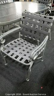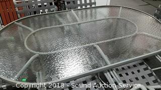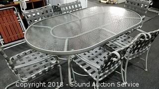 Comes with 6 chairs. Approx. 28-1/2" H, 42" x 74". The auctioneer shall not be responsible for the correct description, authenticity, genuineness of, estimated selling price of, or defect in any lot, and makes no warranty in connection therewith. No allowance will be made or sale set aside on account of any incorrectness, error in cataloging, or any imperfection not noted. No deduction will be allowed on damaged articles as all goods being exposed for public exhibition are sold “as is” and without recourse. All measurements and sizes - are approximate. CLAIMS - No claims will be allowed after goods are removed from premises. All lots - to be sold AS IS, WHERE IS. ALL SALES FINAL, WE DO NOT ACCEPT RETURNS.