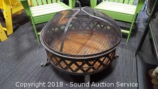 Lot #0107: Outdoor Steel Fire Pit w/Mesh Screen