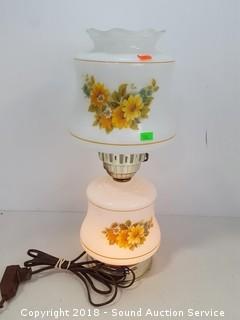 Lot #0126: Painted Glass Shade Electrified Table Lamp