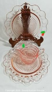 Lot #0195: Pink & Yellow Depression Glass Dishes