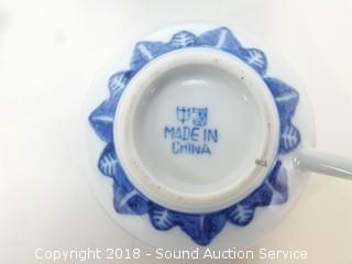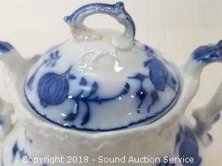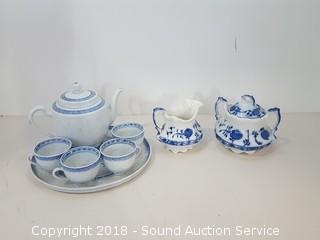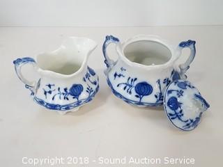 Lot #0033: Vtg. Delft Blue Cream & Sugar w/Tea Set
