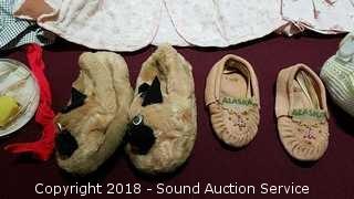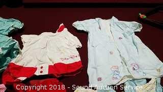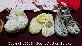 Lot #0223: Vtg. Knitted Baby Boots, Bib Holder & Outfits