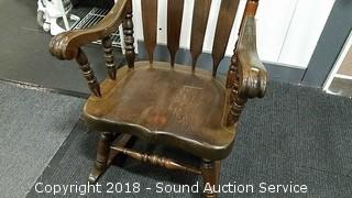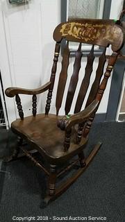 Lot #0174: Vtg. Solid Wood Rocking Chair