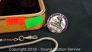 Includes: Some Mason Pins, Stainless Pocket Watch Fob and more. Jewelry box included. The auctioneer shall not be responsible for the correct description, authenticity, genuineness of, estimated selling price of, or defect in any lot, and makes no warranty in connection therewith. No allowance will be made or sale set aside on account of any incorrectness, error in cataloging, or any imperfection not noted. No deduction will be allowed on damaged articles as all goods being exposed for public exhibition are sold “as is” and without recourse. All measurements and sizes - are approximate. CLAIMS - No claims will be allowed after goods are removed from premises. All lots - to be sold AS IS, WHERE IS. ALL SALES FINAL, WE DO NOT ACCEPT RETURNS.
