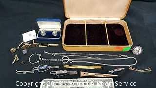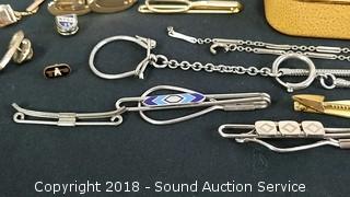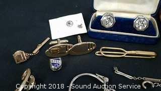 Lot #0162: Vtg. Tie Clips, Pins & Cufflinks