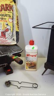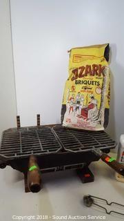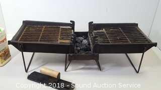 One is complete, in good condition. Other is missing one of the grill supports, still functional. Comes with charcoal briquets and charcoal lighter. The auctioneer shall not be responsible for the correct description, authenticity, genuineness of, estimated selling price of, or defect in any lot, and makes no warranty in connection therewith. No allowance will be made or sale set aside on account of any incorrectness, error in cataloging, or any imperfection not noted. No deduction will be allowed on damaged articles as all goods being exposed for public exhibition are sold “as is” and without recourse. All measurements and sizes - are approximate. CLAIMS - No claims will be allowed after goods are removed from premises. All lots - to be sold AS IS, WHERE IS. ALL SALES FINAL, WE DO NOT ACCEPT RETURNS.