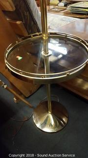 Lot #0054: Brass & Glass Floor Lamp/Side Table