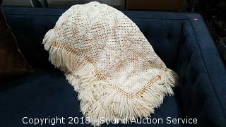 Lot #0253: Knitted Yarn Afghan w/Fringe