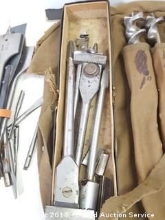 This auction consists of various Native Jewelry, Estate Home Furnishings & Decor! Including: Native Sterling & Turquoise Jewelry, Fashion Jewelry, Vintage Dressers, Dining Sets, Original Artwork, Portable Art Station, Nice Hutch, Antique Royal Typewriter, Old Willow China, Vtg. Silverware Set w/Chest, Woodworking Tools, Vtg. Genuine Furs, Old Sideboard Buffet, Tin Trays & Cart, Nice Wood Rocker, Kenmore Washer & Dryer, Secretary Desks, 1914 Vise, Pool Sticks, Vtg Table lamps, Oil Lamps, Old Compasses, 21j Pocket Watch, Vtg. Cameras, Vtg. Slides, Electric Grills, Hibachi Grills, Outdoor Furniture, Tools & Much More!