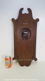 Quartz movement. Works. Approx. 24" x 10". The auctioneer shall not be responsible for the correct description, authenticity, genuineness of, estimated selling price of, or defect in any lot, and makes no warranty in connection therewith. No allowance will be made or sale set aside on account of any incorrectness, error in cataloging, or any imperfection not noted. No deduction will be allowed on damaged articles as all goods being exposed for public exhibition are sold “as is” and without recourse. All measurements and sizes - are approximate. CLAIMS - No claims will be allowed after goods are removed from premises. All lots - to be sold AS IS, WHERE IS. ALL SALES FINAL, WE DO NOT ACCEPT RETURNS.