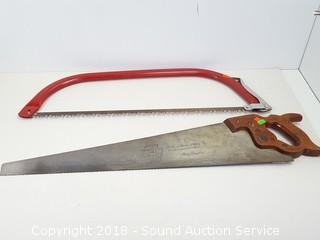 Lot #0104: Vtg. 26" Disston Hand Saw & 22" Bow Saw
