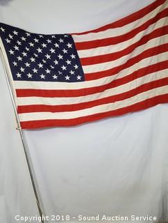 Lot #0043: Vtg. 3ft x 5ft US Cloth Flag w/Pole