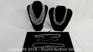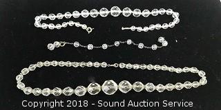 All are genuine crystal. Also comes with two other crystal prism necklaces. The auctioneer shall not be responsible for the correct description, authenticity, genuineness of, estimated selling price of, or defect in any lot, and makes no warranty in connection therewith. No allowance will be made or sale set aside on account of any incorrectness, error in cataloging, or any imperfection not noted. No deduction will be allowed on damaged articles as all goods being exposed for public exhibition are sold “as is” and without recourse. All measurements and sizes - are approximate. CLAIMS - No claims will be allowed after goods are removed from premises. All lots - to be sold AS IS, WHERE IS. ALL SALES FINAL, WE DO NOT ACCEPT RETURNS.