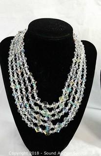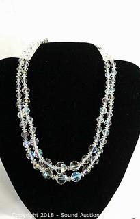 Lot #0206: Vtg. Aurora Borealis Layered Crystal Necklaces