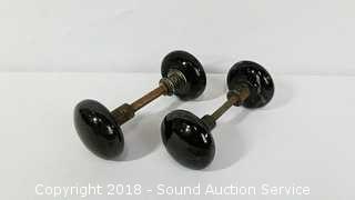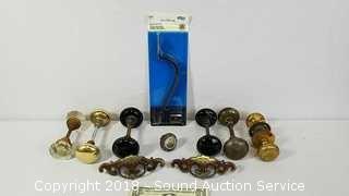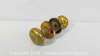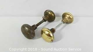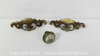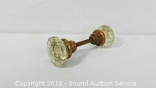 Lot #0350: Vtg. Brass & Glass Door Handles & Drawer Pulls