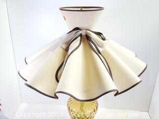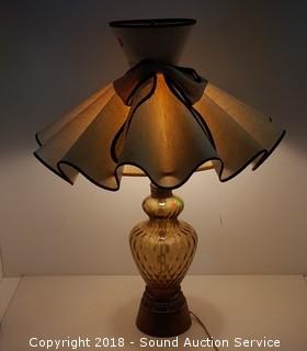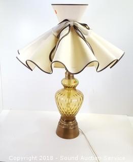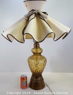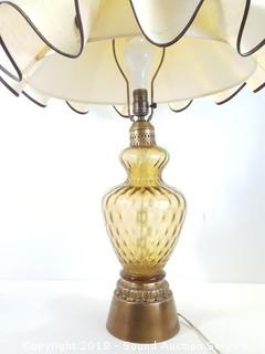 Lot #0089: Vtg. Glass & Brass Table Lamp w/Scalloped Shade