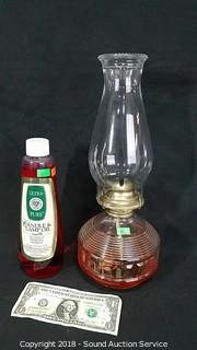 Lot #0087: Vtg. Oil Lamp w/Candle & Lamp Oil