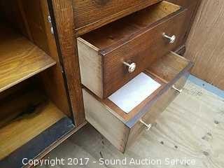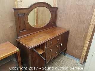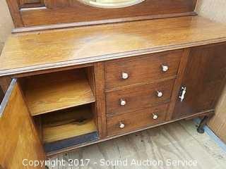 Lot #0160: Antique Oak Mirror back Sideboard Buffet