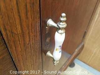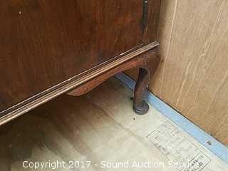 Beveled mirror, cabriole legs, 2 doors and 3 drawers. 54" wide 36.5" tall 63" to the top of the mirror, and 20" deep