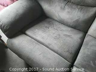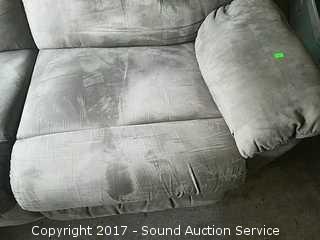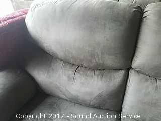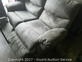 Lot #0018: Green Microfiber Dual Reclining Rocking Loveseat